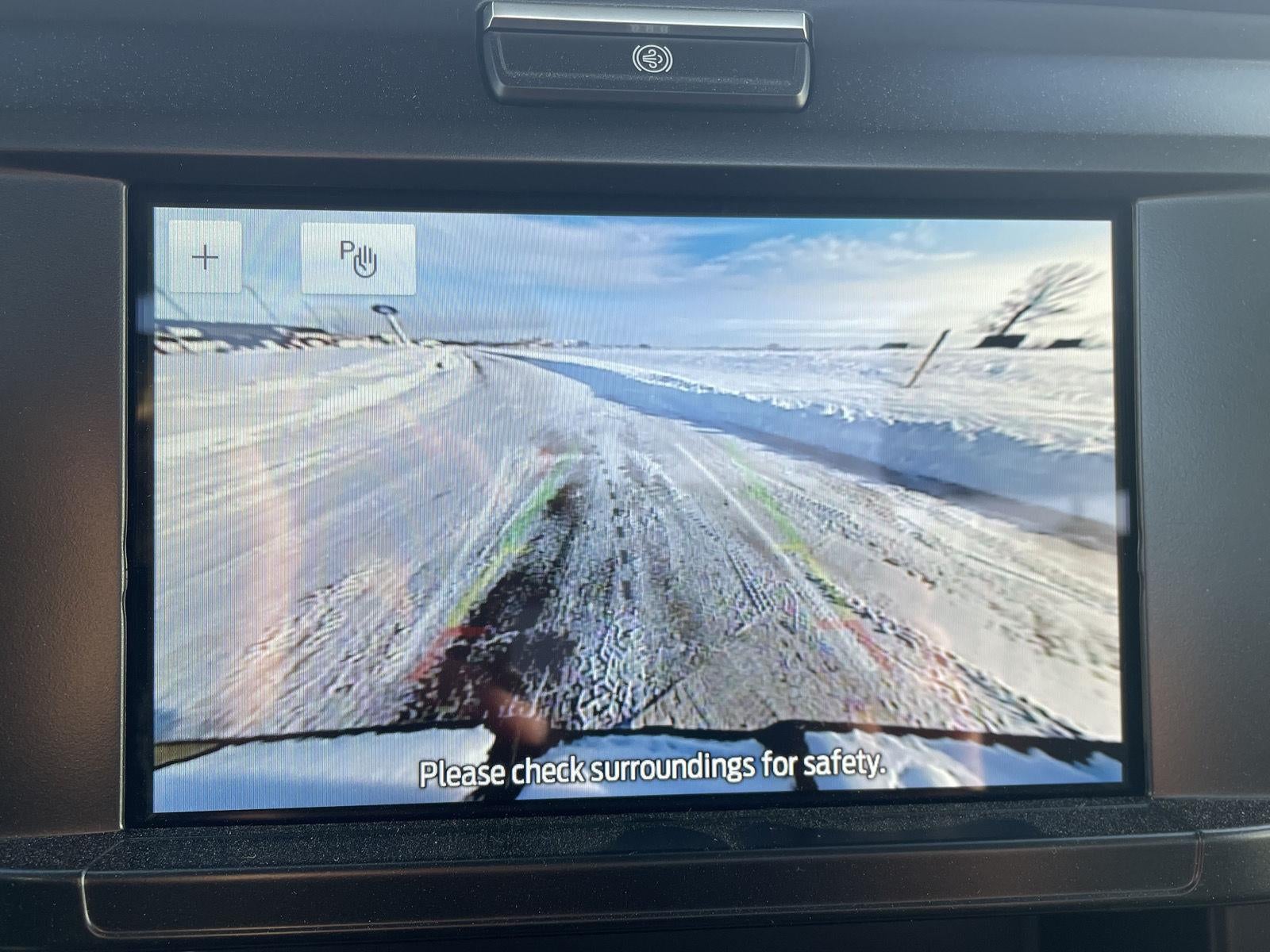 • The vehicle is equipped with a camera that displays an image of the area behind the vehicle on an interior display.